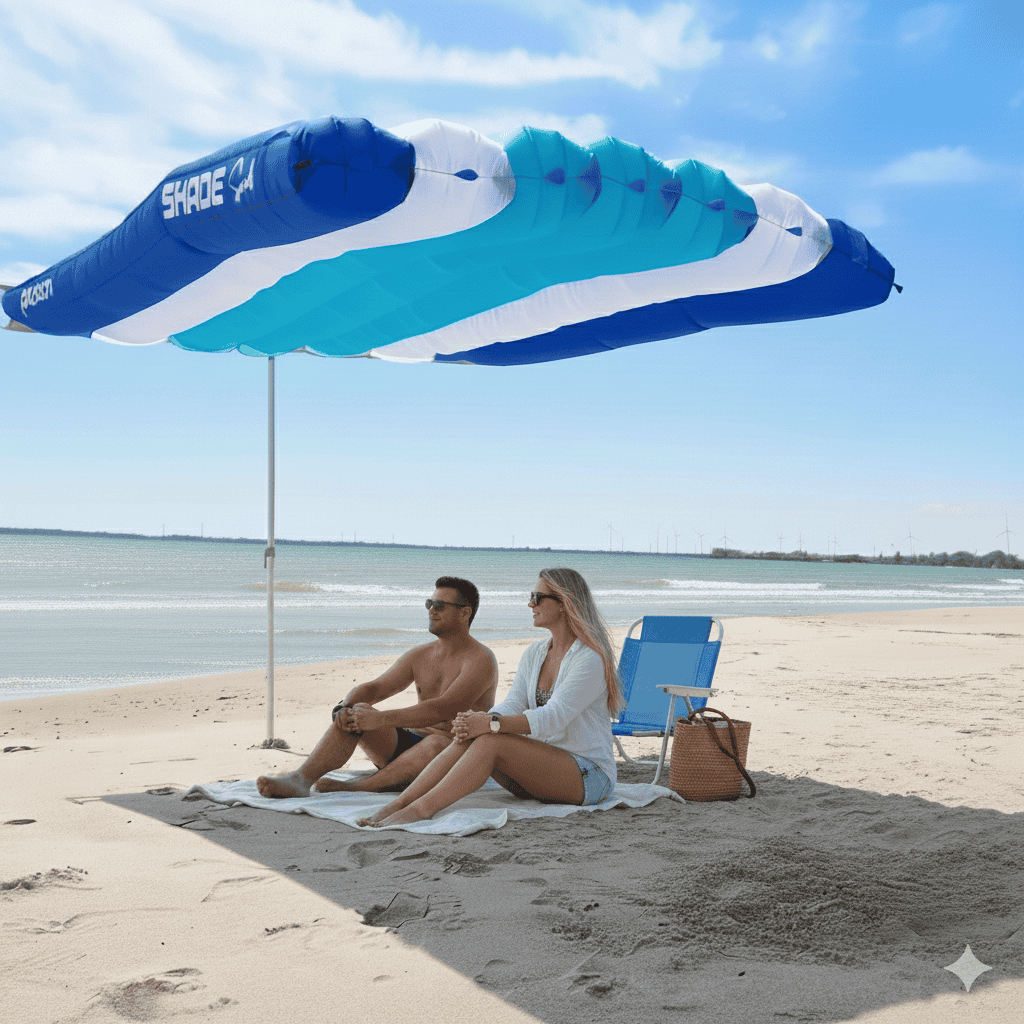 O ShadeSock é uma solução moderna para criar sombra na praia sem ferro, sem pano batendo e sem complicação. Mais conforto e praticidade para aproveitar melhor o dia.